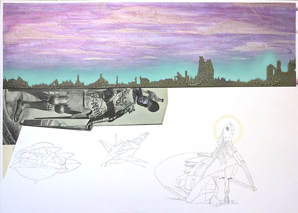 Collage, deco foil, pencil, acrylic paint + spray, 30x40cm to 50x70cm, 2011-2017