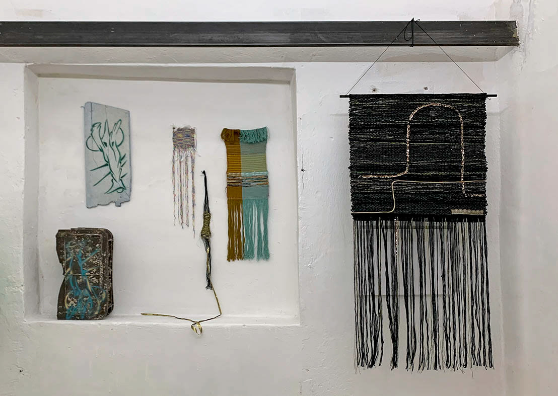 In her textile works, the artist seeks to redefine the boundaries between painting, object and drawing. With seemingly playful ease, she composes her aesthetically perfected miniatures. The interplay of colours and shapes provides viewers with a pictorial space in which they can breathe. The individual qualities of the textile materials used play just as important a narrative role as the abstract compositions. The embroideries were created in collaboration with Antonello Magiera's sketches of organic spaceships.