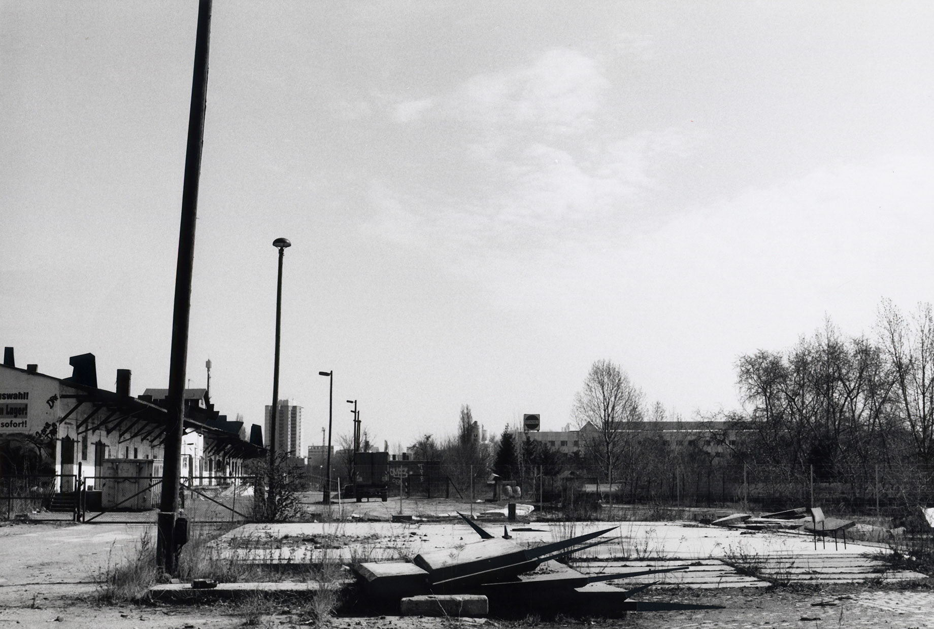 Collage 2007 black+white print, self-adhesive foil, 20×30 cm Strugazki's location scout for a roadside picnic in Berlin